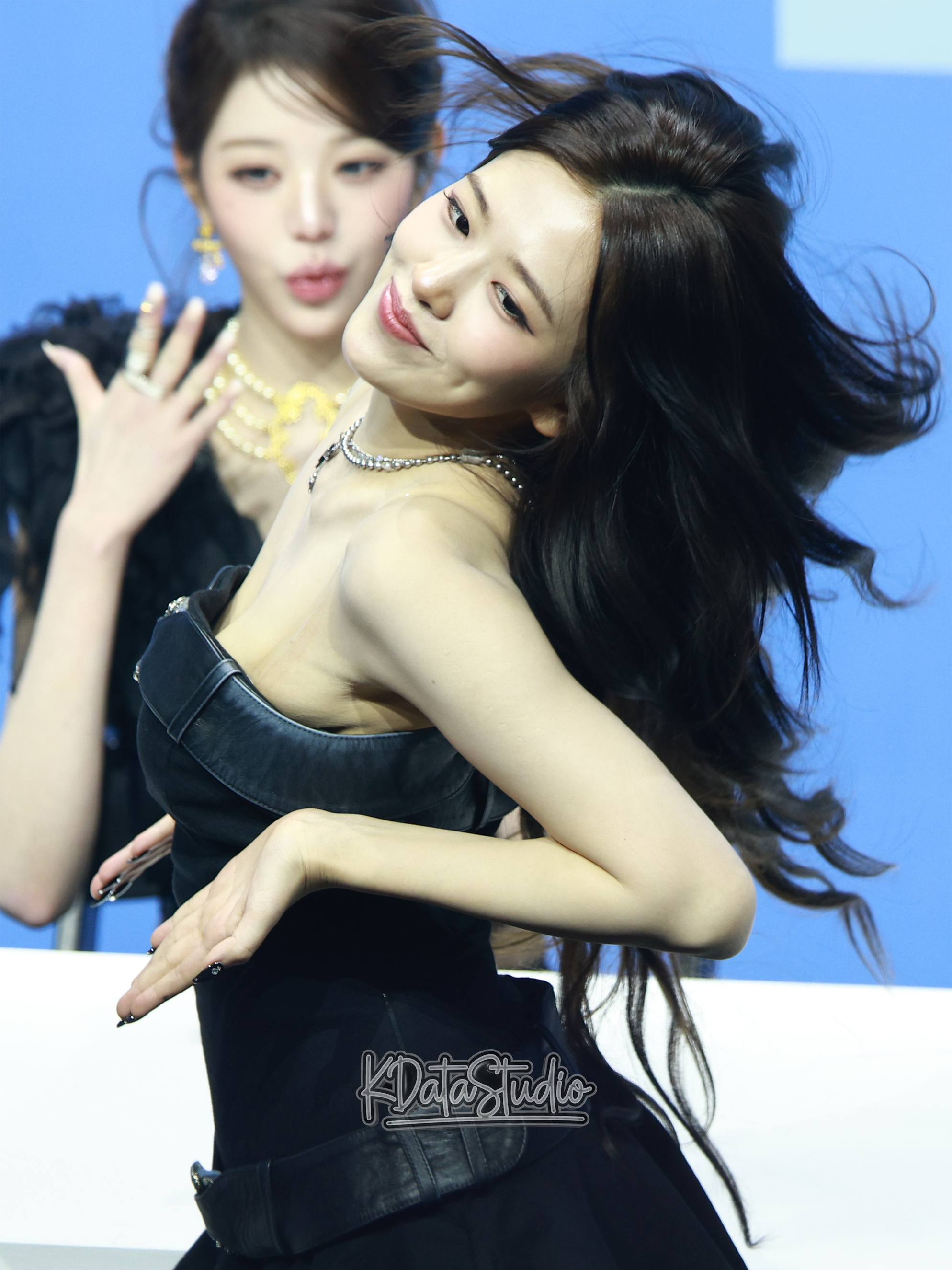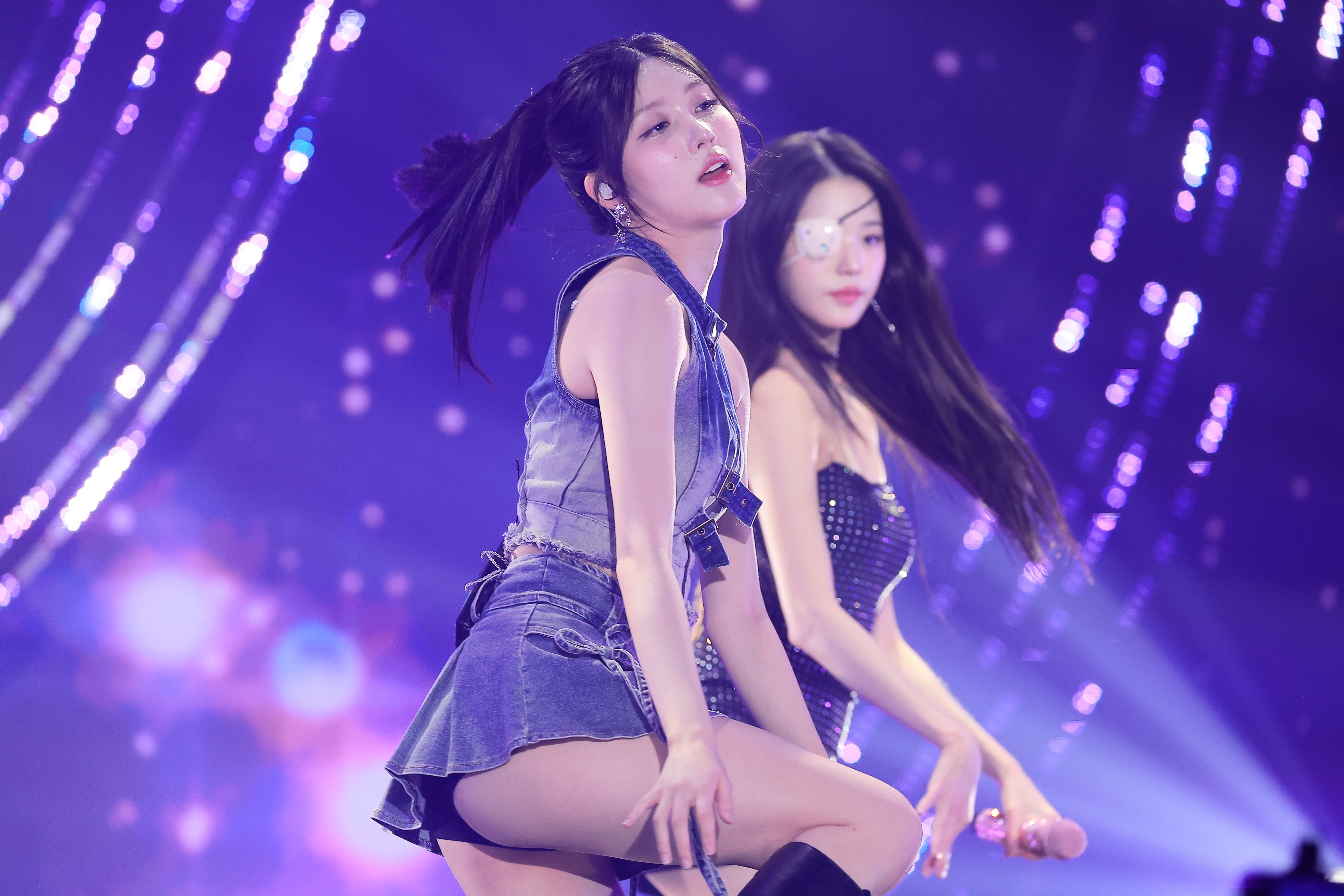"Today's show is on, but the details changed—Yujin and Wonyoung are totally different, only Liz and Rei's bottoms changed, but all four are in short shorts