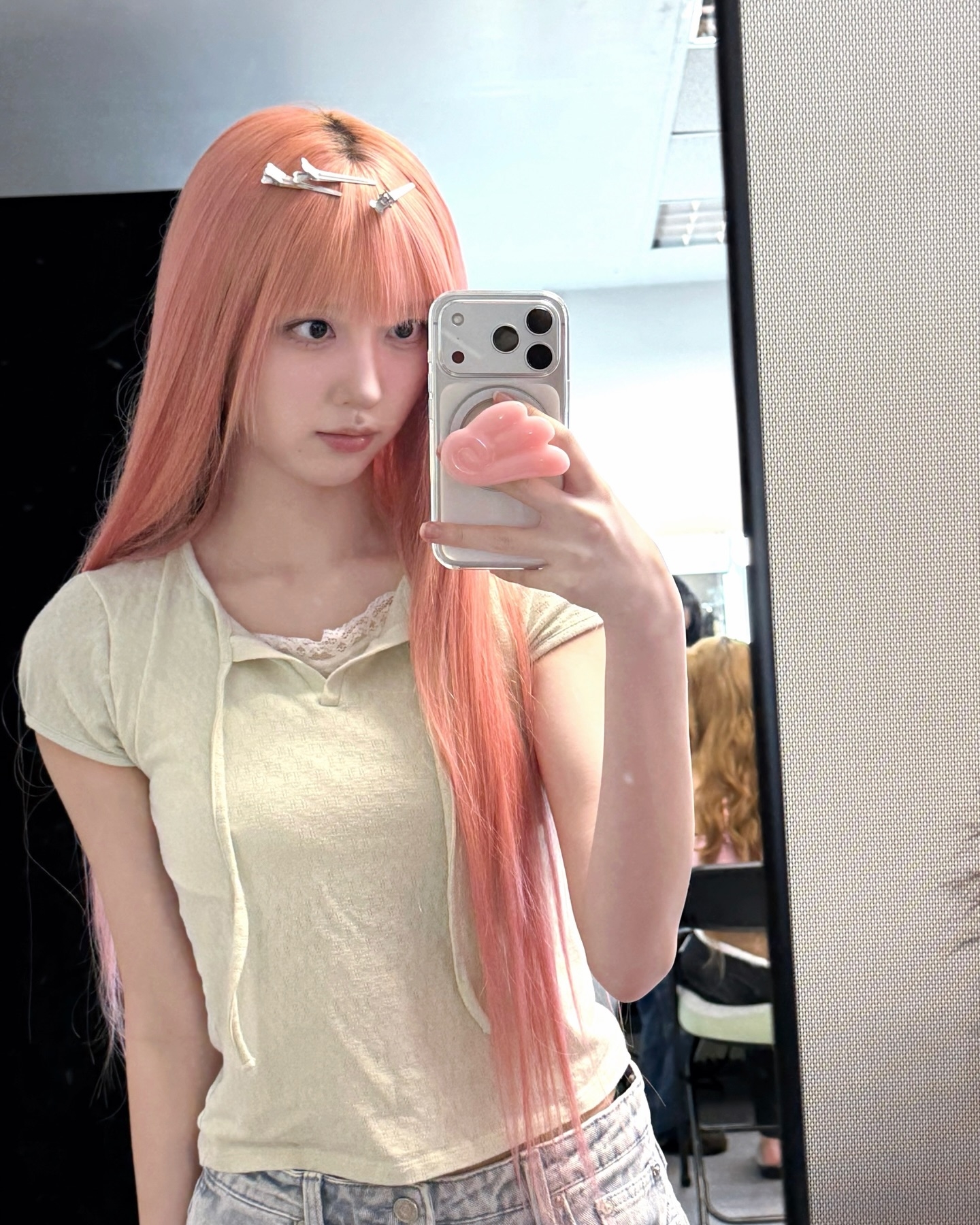 Yujin's slicked-back ponytail, Rei's no-bangs wavy hair is really pretty... but more than that, I nearly fainted because of the mid-length bob on that person, it's insane for real"