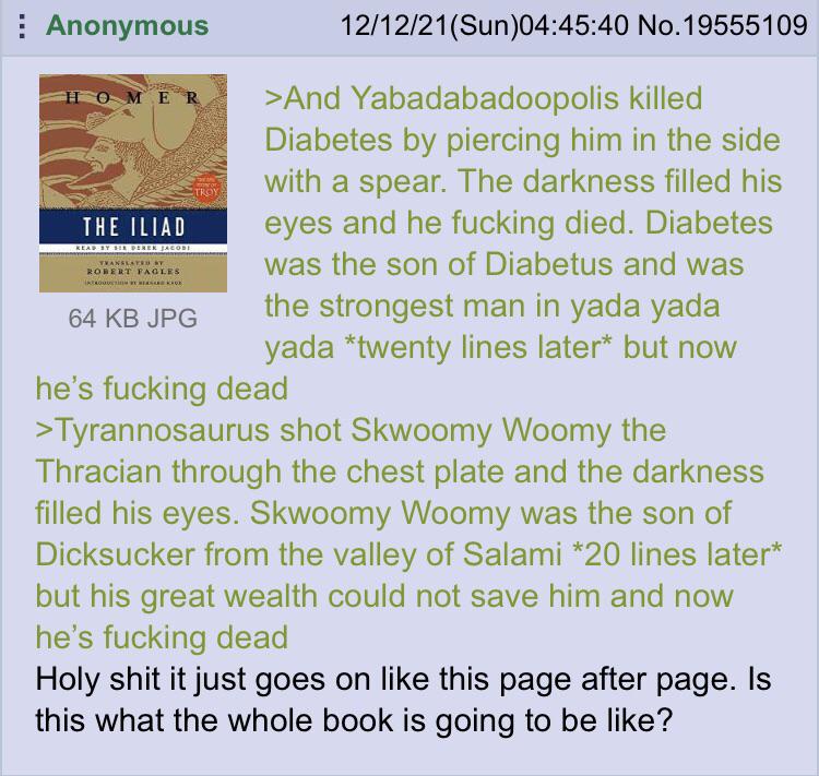>>129550497Yeah, Homer is the peak of classic literature for sure.
