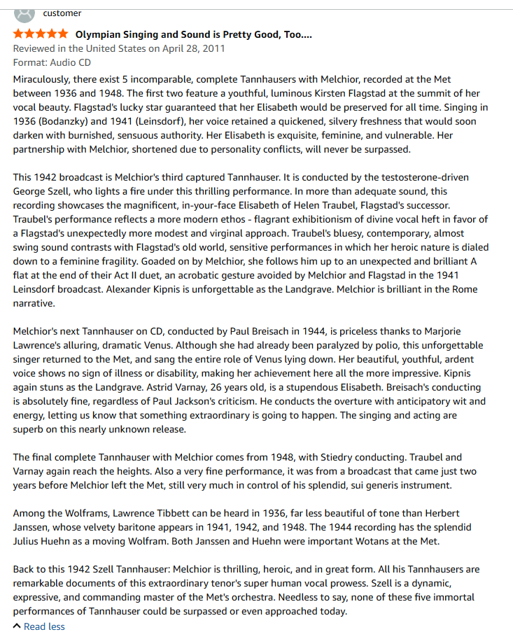 >>129562371This is fine. There were still good singers floating around until the late 90s or so, even if those performances tended to creep more into inconsistency. Barenboim's Wagner does tend to have more good singing than not, especially compared to today. Although I wouldn't say that there is a uniform excellence across all his cast members unlike what we would get in the 30s-60s.