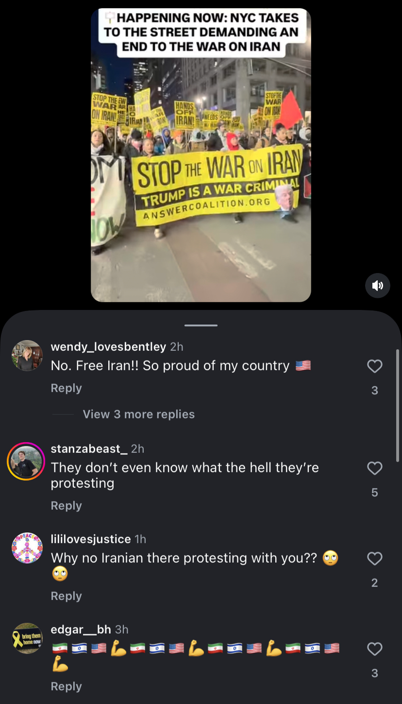 Vietnam War protest music worked because young men were literally being drafted to fight in a war very few people wanted. This war on Iran is mostly being done with air strikes with zero troops on the ground. Also, people will immediately point out how hypocritical she is for being against US intervention all while having never spoken out when the IRGC was mass killing protesters.