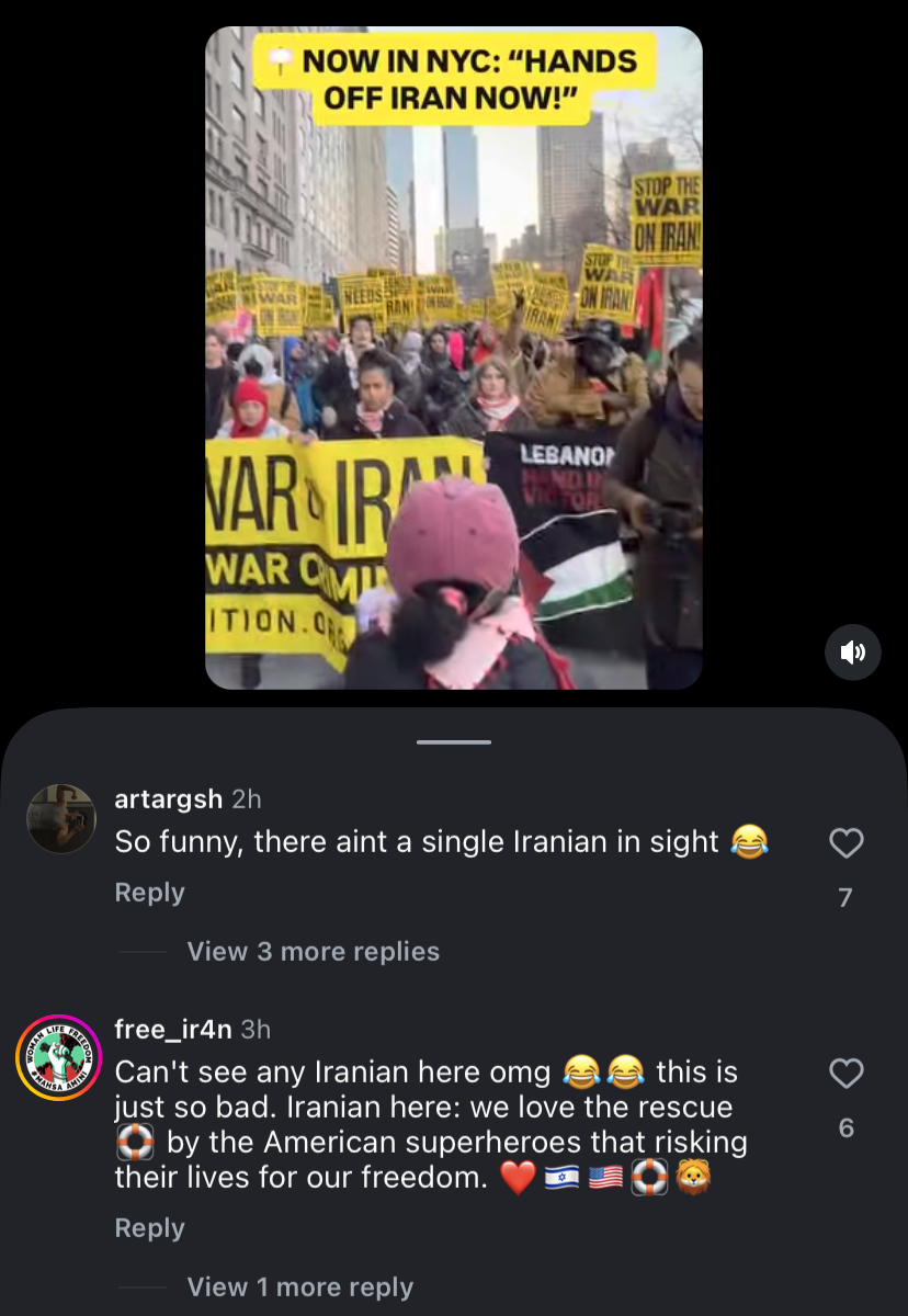 >>129568375>>129568456Watch the footage of the recent anti-war protests in NYC. Not a single Iranian was in attendance. All diaspora Iranians support the war became they know how evil the Islamic Republic is. It’s only whites and Arabs who support Iran.