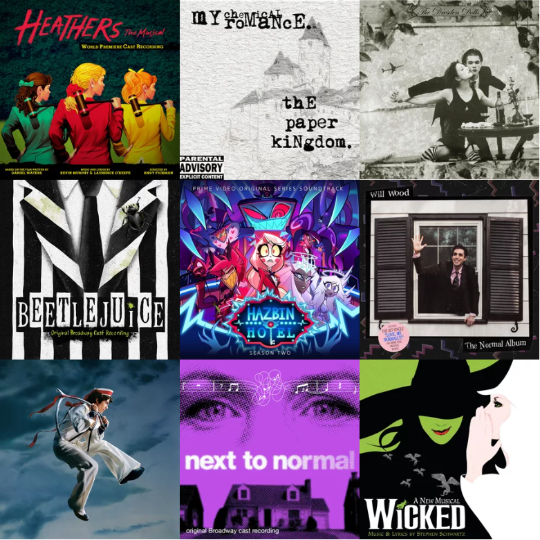 >>129556973Check out Epic, Creeper, the Deer Hunter, and stuff by Lin Manuel Miranda too.