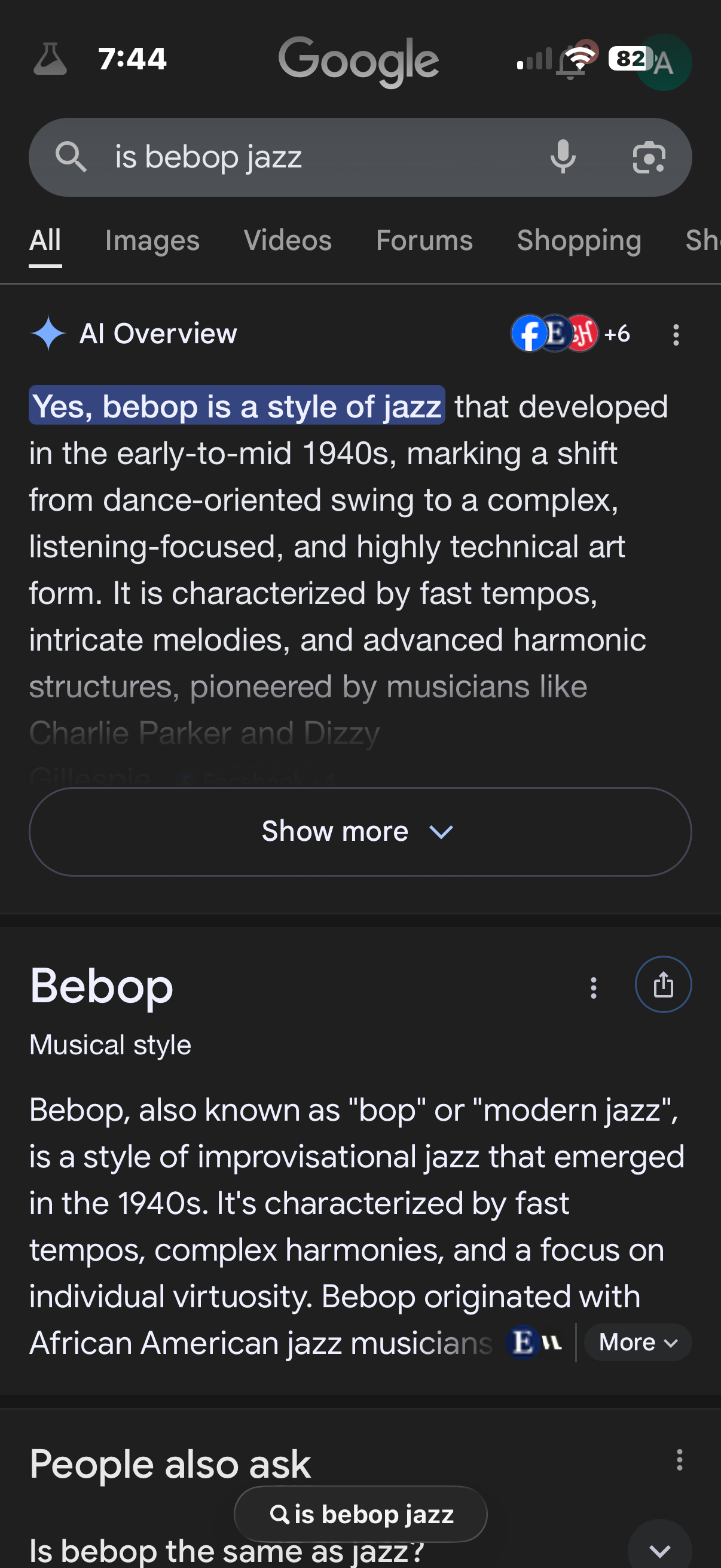 It's bebop, not jazz