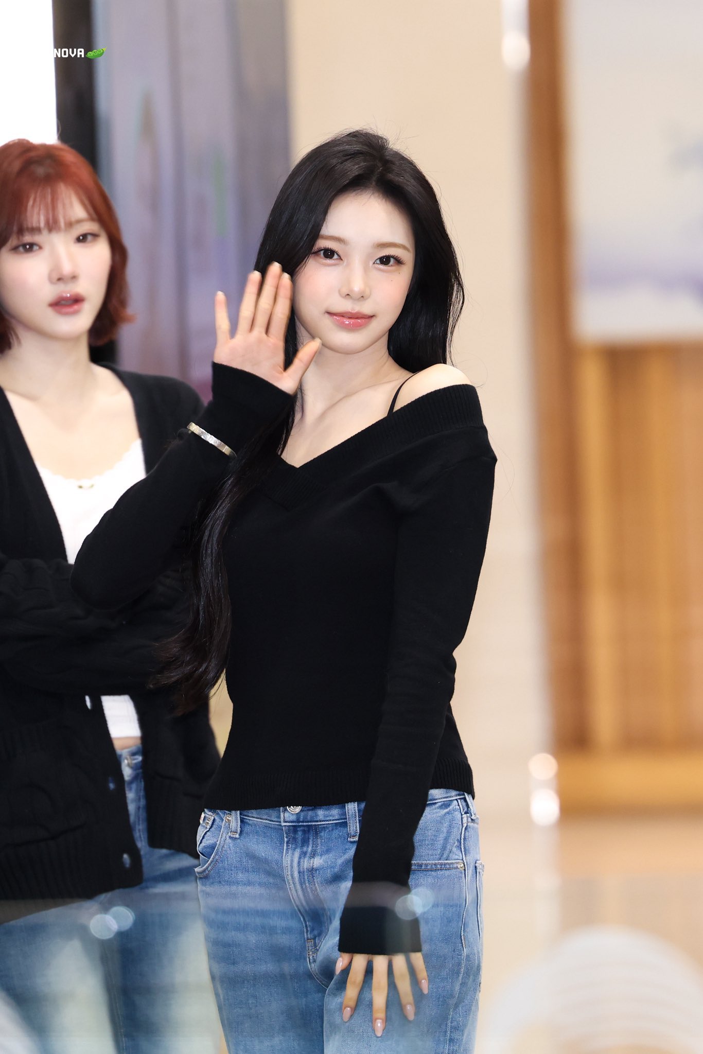 Karina showing Jiwoo how to touch it
