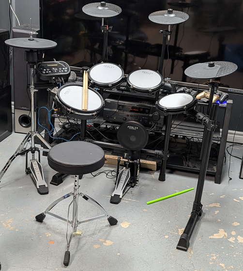 Getting good at drums was a huge pleasure. Took over a year of heavy focus to break the wall my bass pedal foot had hit and now I can do it very fast and all sorts of offbeats that most drummers don't attempt. I play the Hihat with my left hand which kind of opens me to grooving in a different way. I wish i had more creative fills but I'm more of an offbeat player than a fancy fills guy