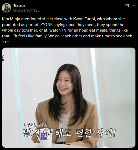 at least one of the izone girls is making sure minju isn't all alone out there in the world