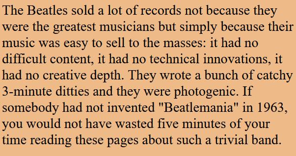 Beatles are the greatest just because of how much they make everyone seethe