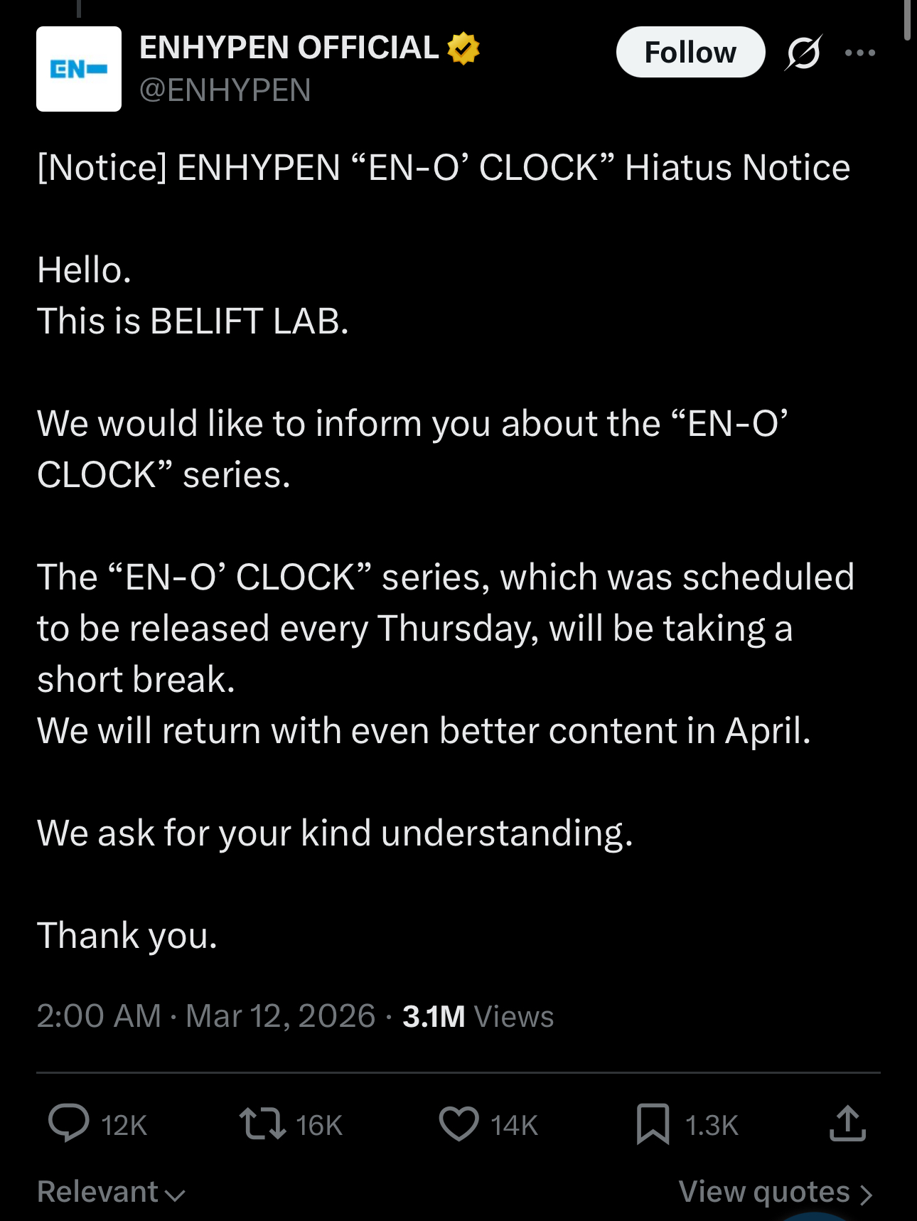 First delaying merch, fancalls now this. Zero chance they're doing all this because Heeseung chose it.