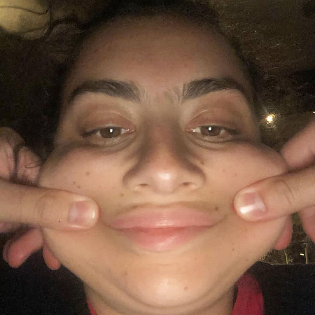 listening with my face in my hands and a big smile