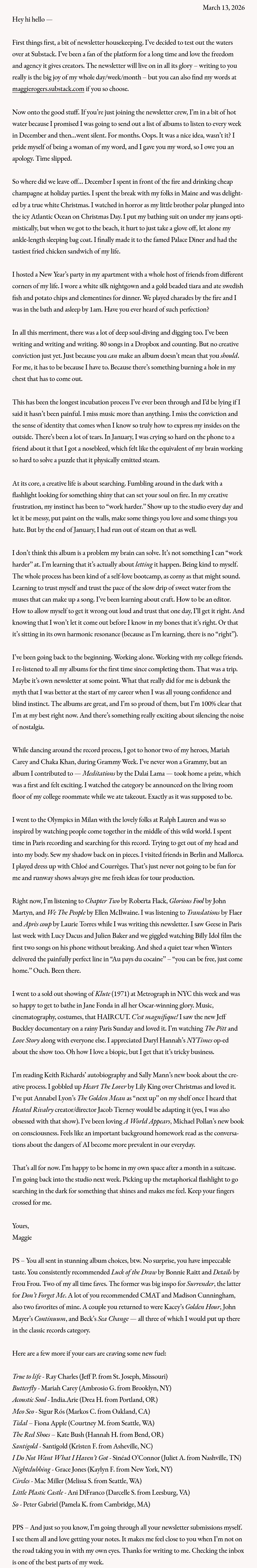 Maggie's latest newsletter.