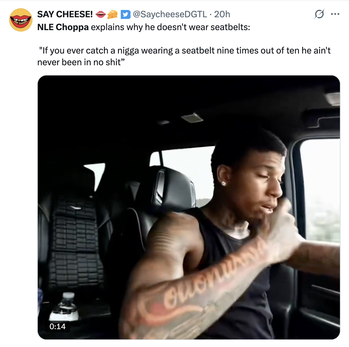 yes, as a big NLE Chopper fan myself I never wear seatbelts, seatbelts are for yts