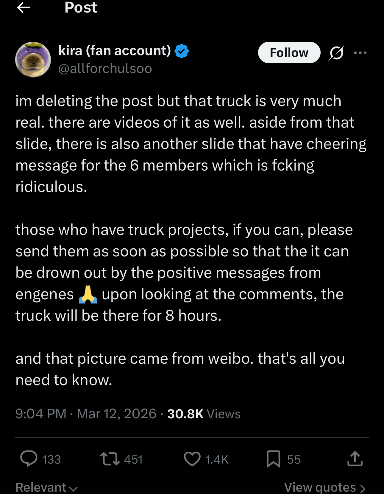 >>129672837These trucks cost thousands of dollars each btw. Hysterical women literally throwing away their money over an idol choosing to be a soloist.