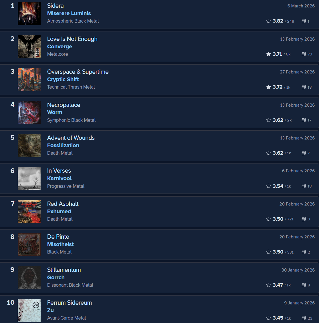 Basically 10 posts where no one talked about metal.No idea why the thread is usually slow, proper mystery.
