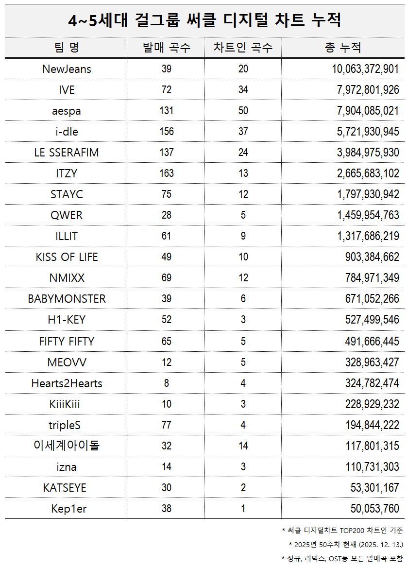 >4th-5th Generation Girl Group Circle Digital Chart Cumulativeand with a 2 year hiatus (and a 2 year only career span)