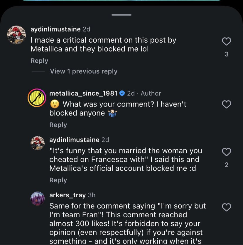 >>129697691DRAMA TIME!someone on twitter is also saying his kids no longer follow metallica