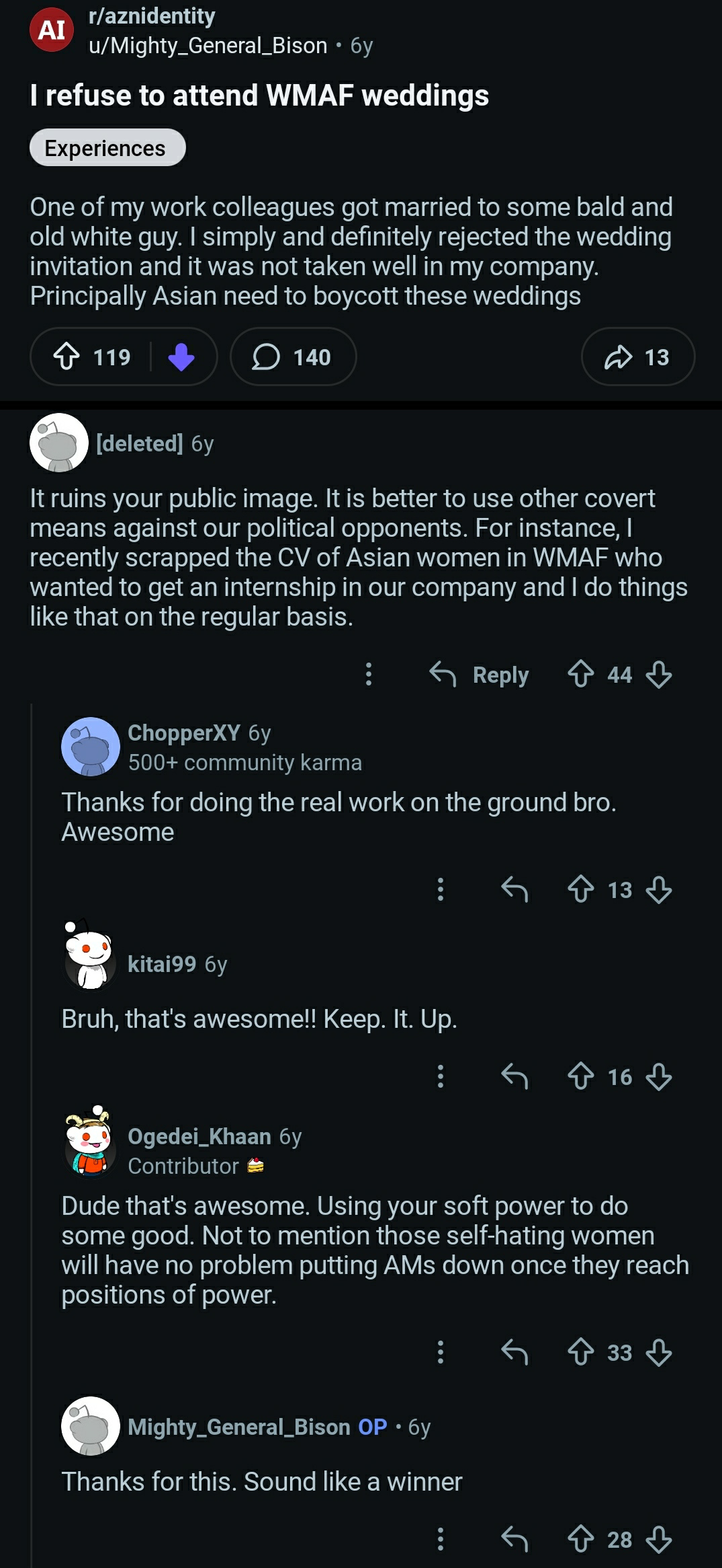 Of course, eunchud never fails to reply to racebait posts