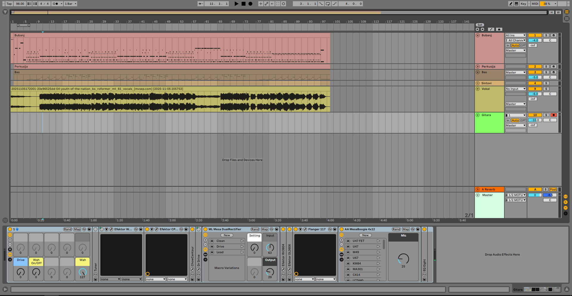 >>129720829>>129720807But I just have a guitar, drums, bass and vocals, so adjusting the levels should be easy. For my guitar, I add a high pass filter above 150Hz, I don't really EQ the other tracks, since they shouldn't compete that much. I only have compression on my guitar sometimes.>>129721023I'm gonna give it a try.>you want your playing to be the focusNot really. I just want it to sound like I'm playing along an actual band. I've learned to accept that it can't sound like the album recordings. But sometimes it doesn't even sound like a live recording.