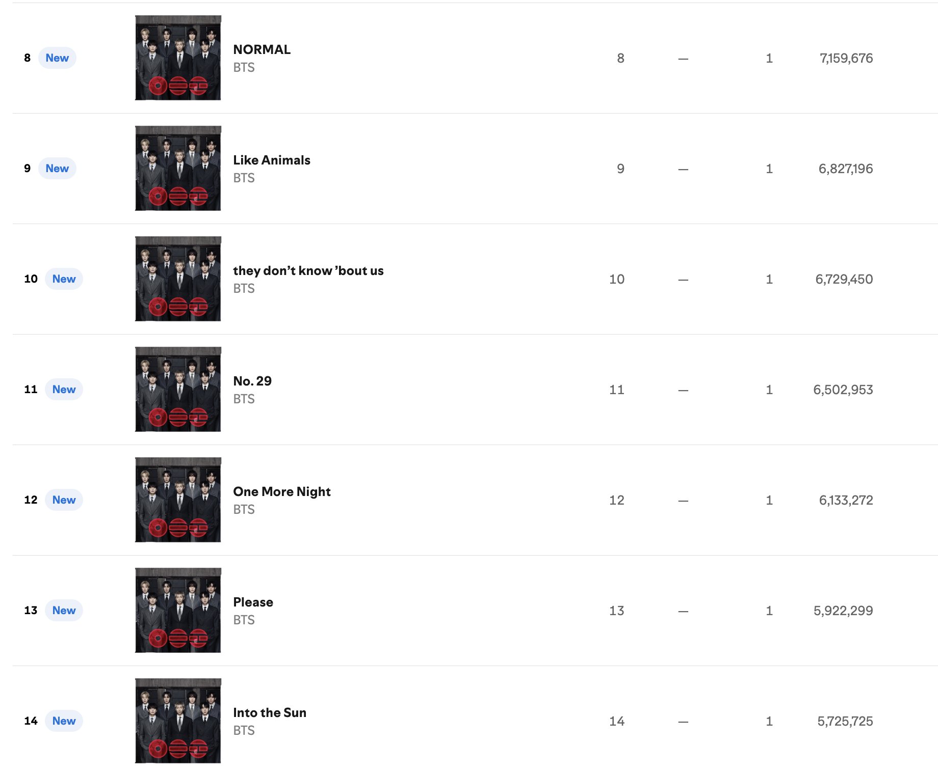 >>129745515110 million total streams, their previous album had 50