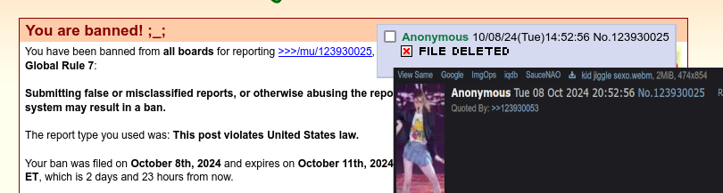>>129746473>then they just stopped caring againwrong, they actually started warning and banning the legitimate reports they asked for. they cared about making sure people stopped reporting it.