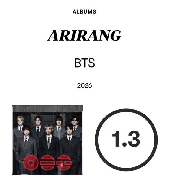 [HT] BTS (@BTS_twt) 5th Full Album <ARIRANG>DAY 1: 3,981,507DAY 2: 0,012,232TOTAL: 3,993,739#BTS #방탄소년단https://x.com/koreansales_twt/status/2035405434392088594