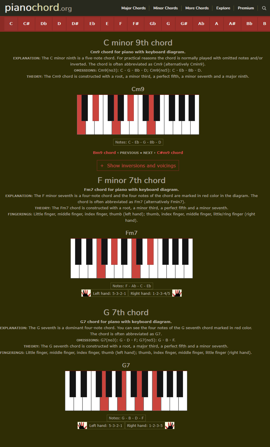 Basic Piano Chords: