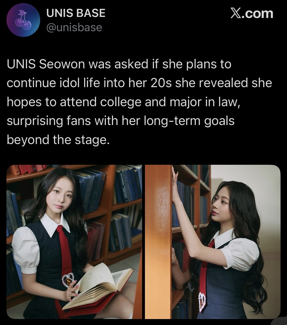 Okay nevermind, i looked more into the Seowon statement and it’s misleading. Basically someone was asking her if she has ever had a back up plan and she said her plan B is to go to law school. It was quick comment, not something she is abandoning idol life for