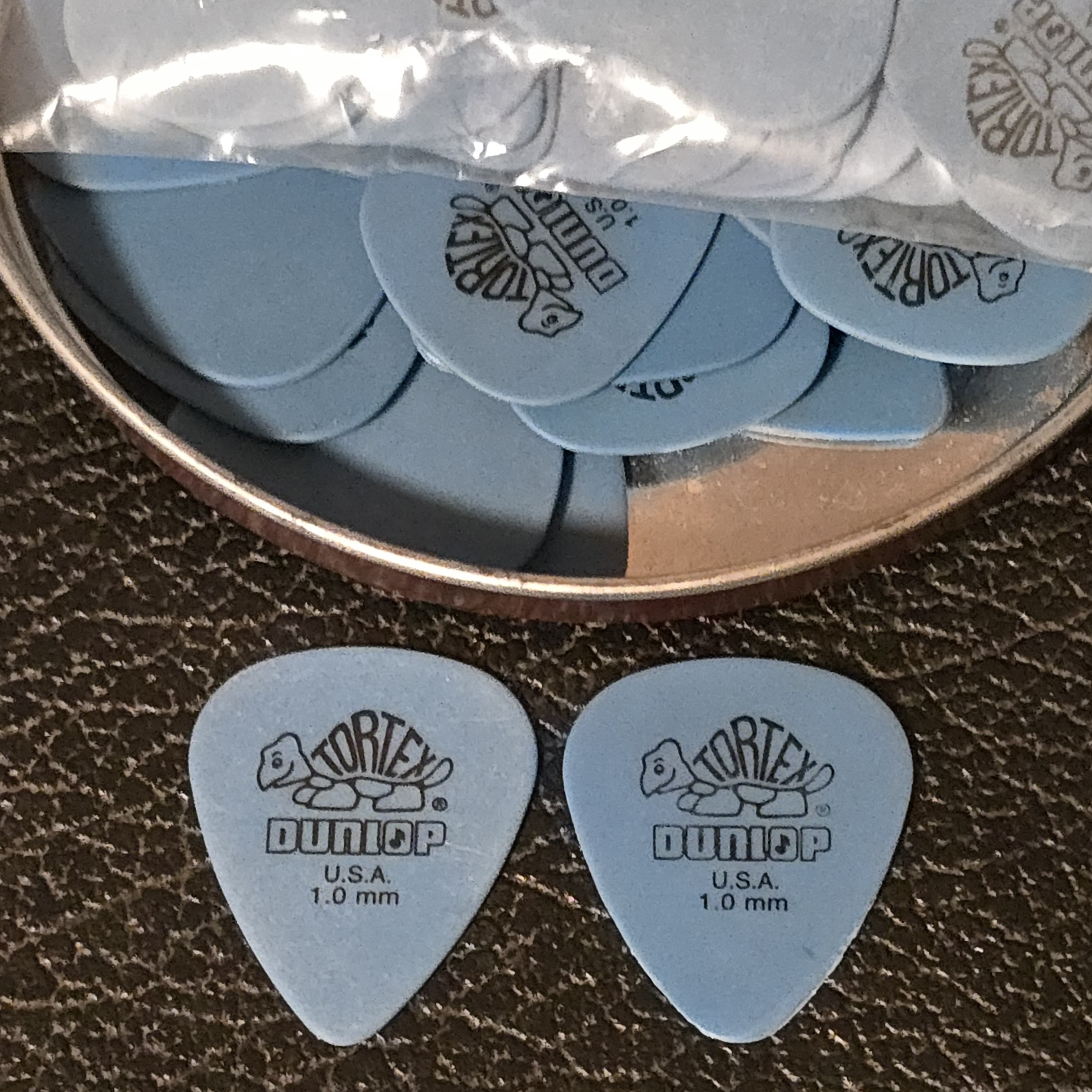 Yeah I play a blue pick, a blue 1.0mm Dunlop Tortex pick