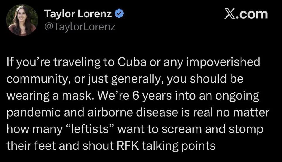 >>129827283>>129827352Then why are you bringing up an irrelevant point? This is about Taylor Lorenz style of mask derangement years removed from the COVID pandemic. And your point is bullshit anyway. Masks did nothing. And still do nothing. I got COVID from from my mask deranged grandfather in January. He literally wears it in the supermarket, post office everywhere.