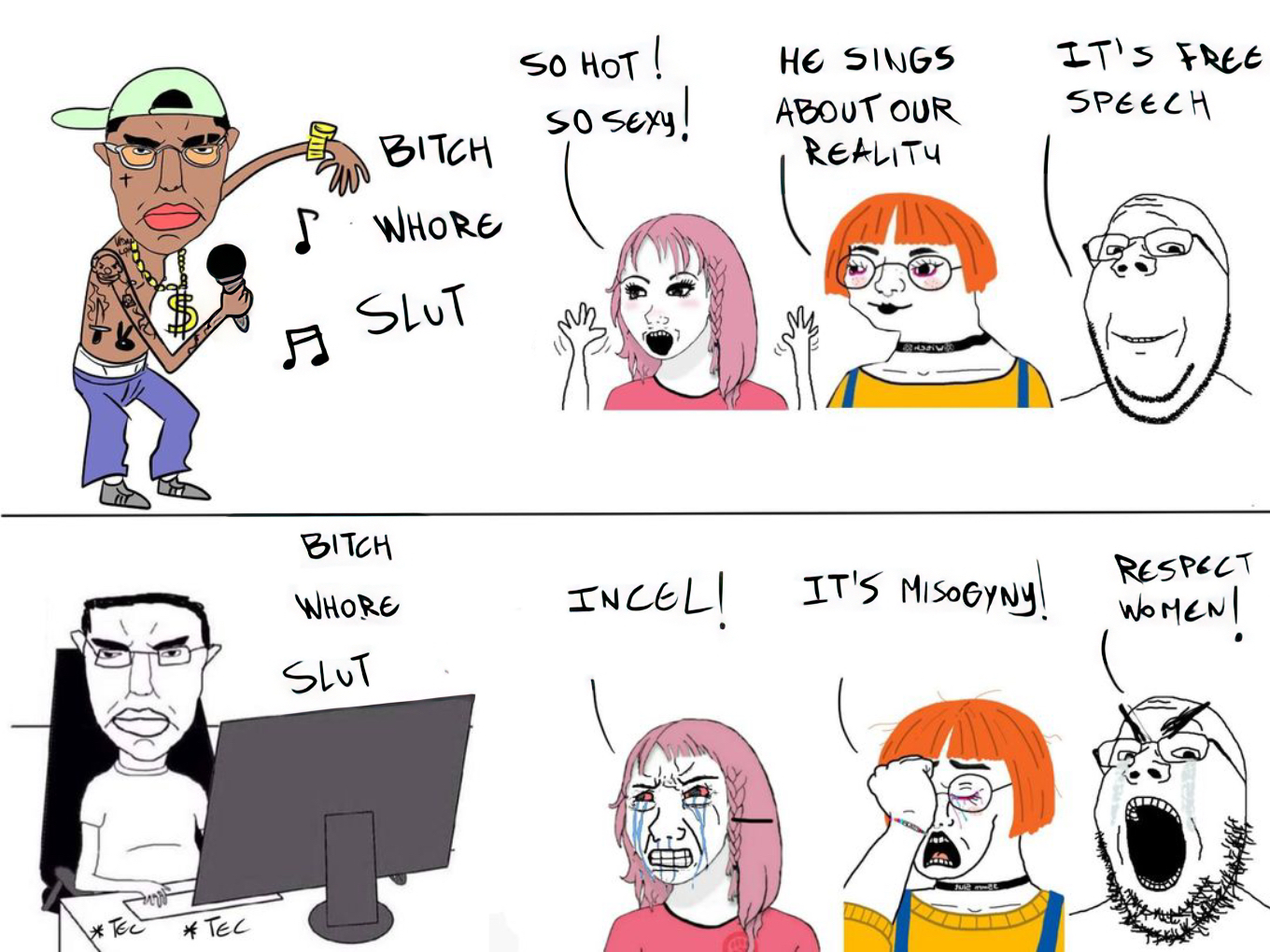 >>129835610There's a part of him that still wants to be a normal misogynistic CIS white dude and sometimes he can't totally hold it back, just like how Cuckgau can't always hold it back either.