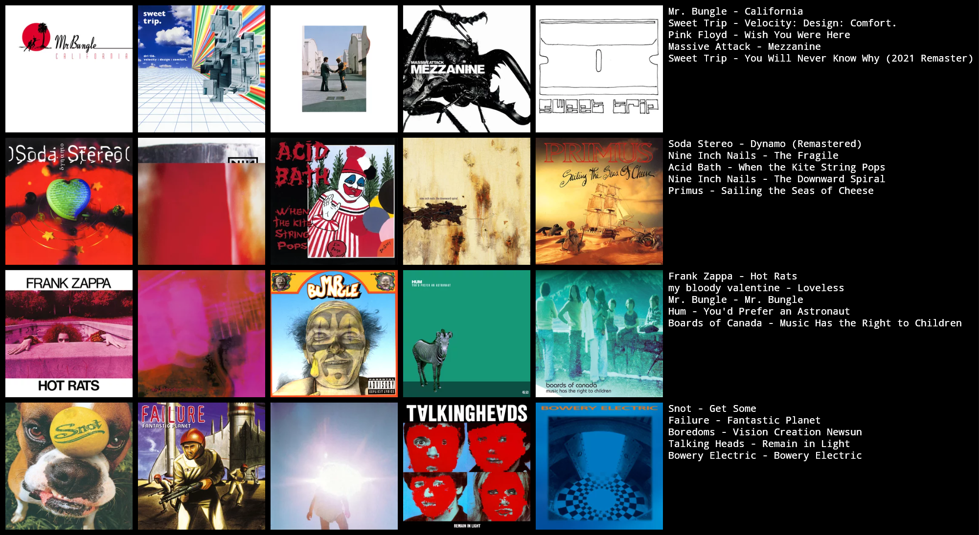 >looking foralbum recs: instrumental hip hop, idm, downtempo, electronic, ambient, abstract hip hop, experimental hip hop, nu jazz, boom bap, indietronica, conscious hip hop>not looking forvc, servers, groups, any people without some reference to know which albums you have already heard/liked (spotify, last.fm, rym, topster, etc.)>discordrem.lin