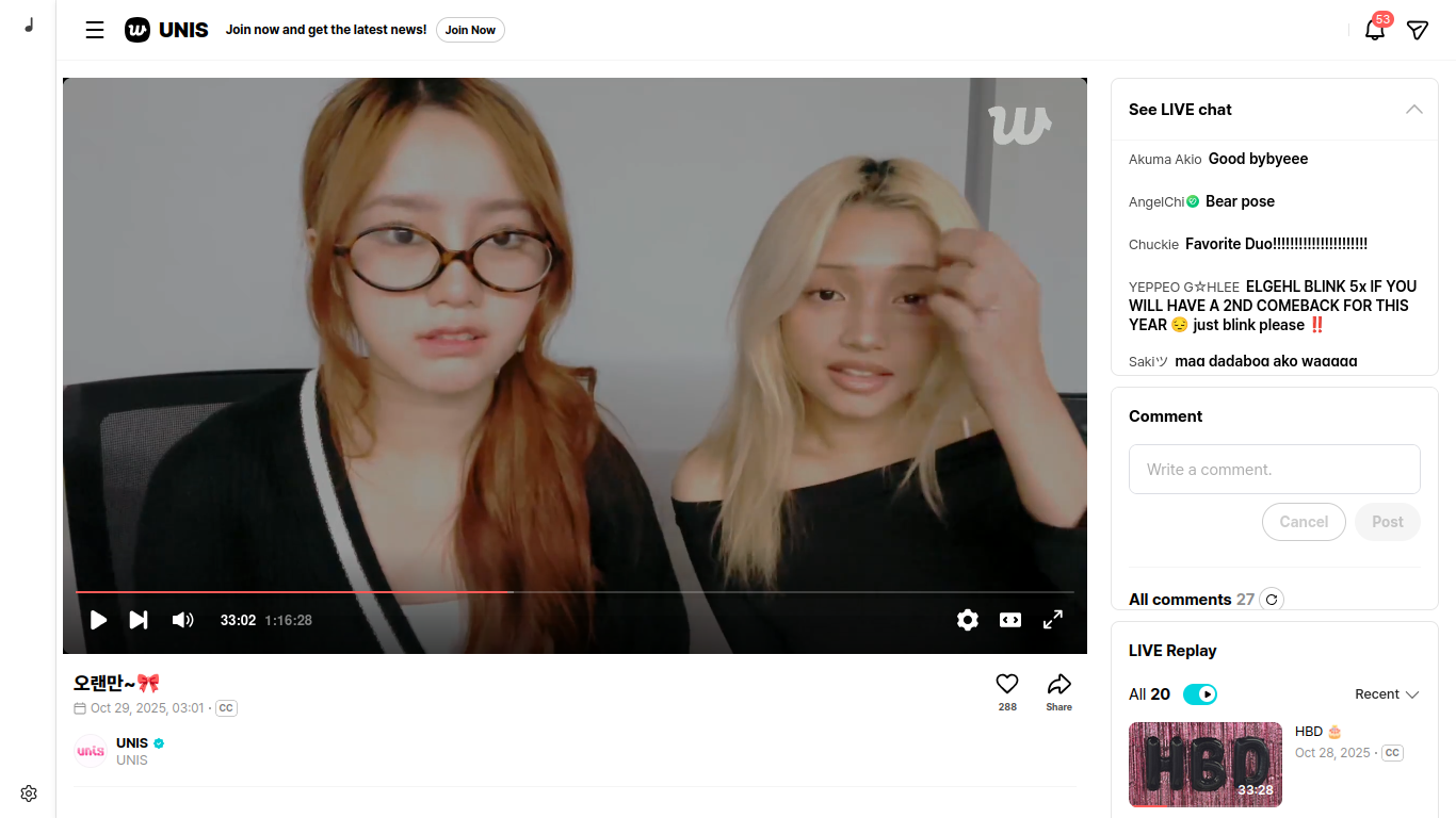 1-15 Han Jihyo ((Jihan) Weeekly) https://youtu.be/GcCF2id7yWM Eric Nam https://youtu.be/ZNdMrUCOLqQ Yena https://youtu.be/ItSKahBISg0