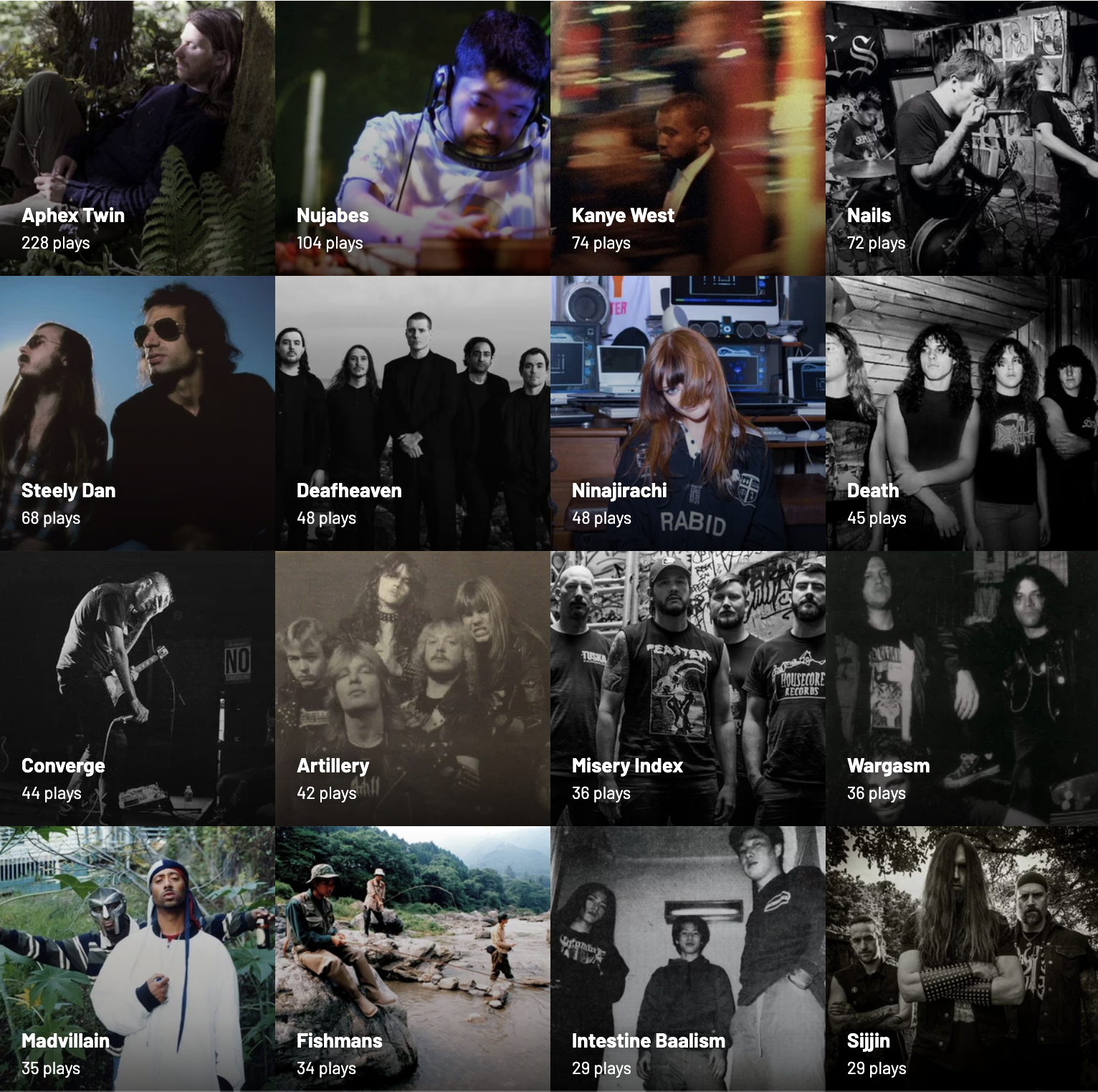 It appears I have done nothing but listen to hardcore punk the last year. >>129893459I met a friend IRL for the first time after speaking to them on discord and we got super high (he has a much higher tolerance than me) and I had a massive whitey on his couch while watching this. Good times. >>129893735+Nujabes, Death, Artillery, Wargasm, Madvillain>>129893808+Black Sabbath
