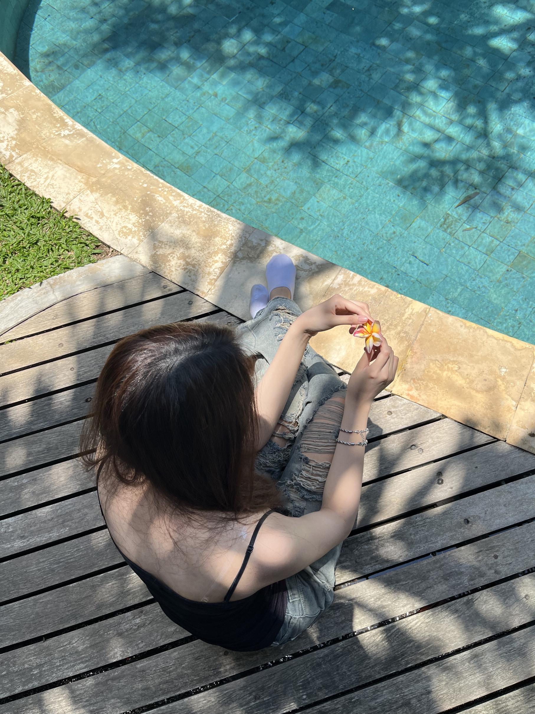 is carmy self conscious about her feet? shes poolside wearing socks...