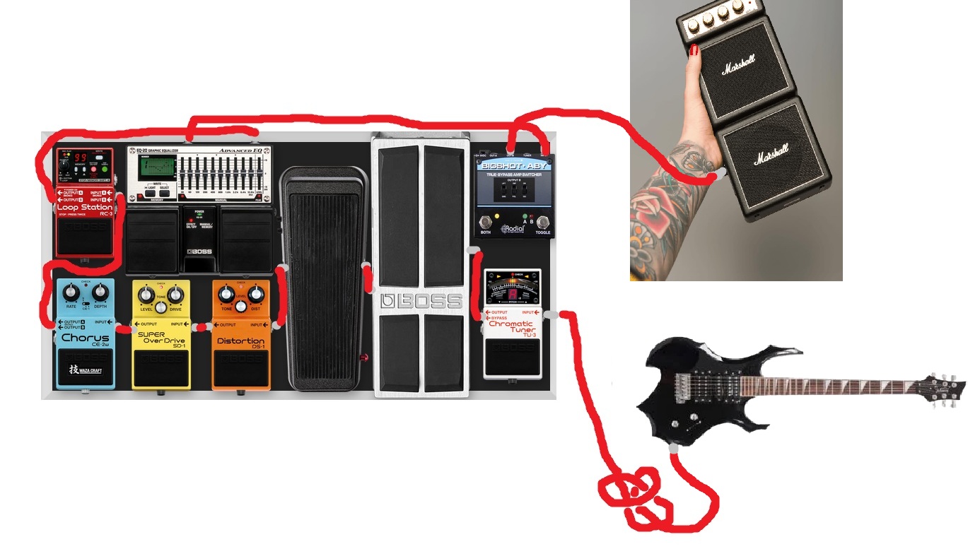 Is this the right order for this pedalboard? Tuner>Volume>Wah>Distortion>Overdrive>Chorus>Looper>EQ>AB/Y Splitter?