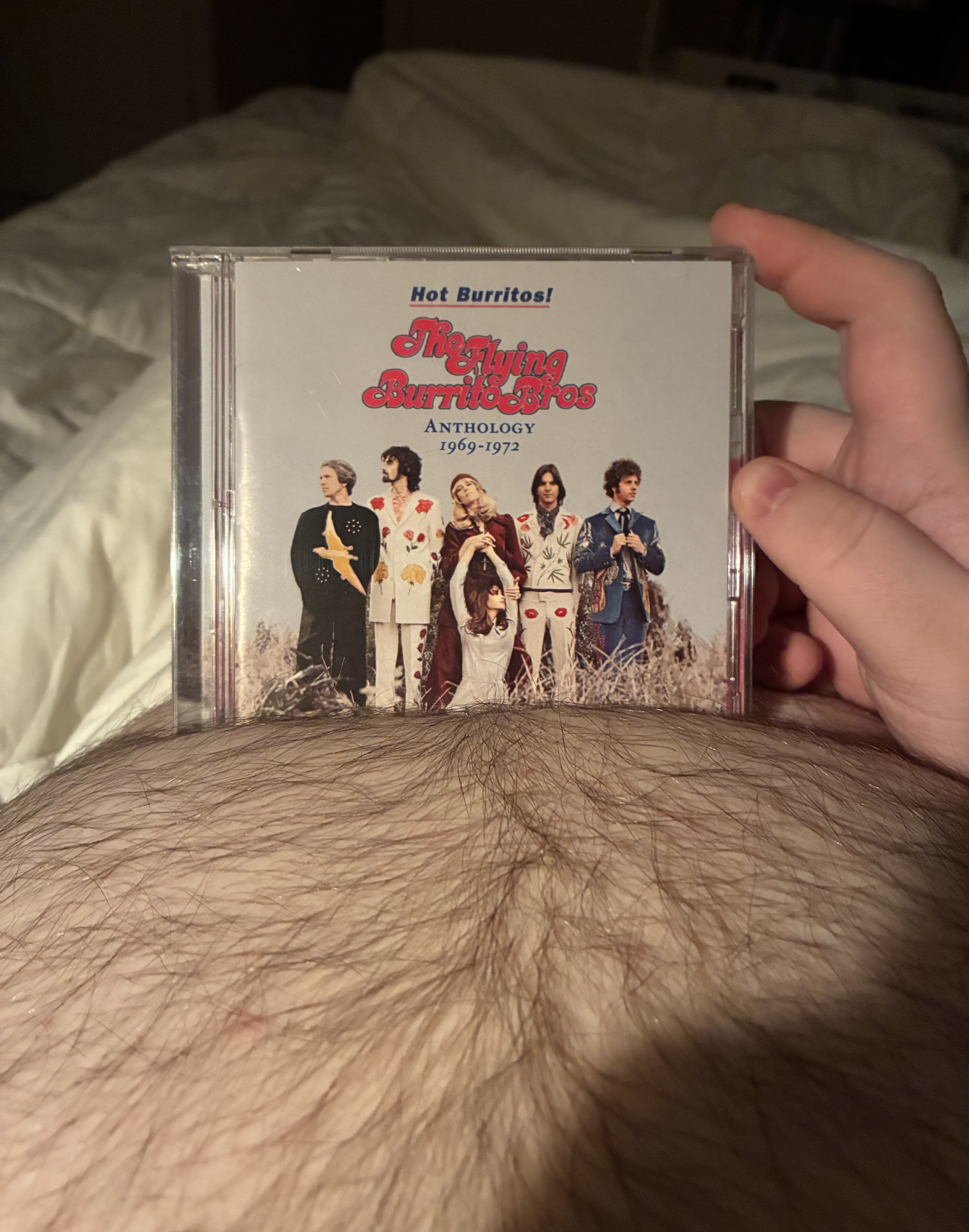 Tonight's listen:The Flying Burrito Brothers - Hot Burritos! The Anthology 1969-1972Following his dismissal from the Byrds, Gram Parsons founded the Flying Burrito Brothers with fellow ex-Byrds Chris Hillman and Michael Clarke to further develop the country-rock sound pioneered on Sweetheart of the Rodeo. After recording two LPs with the Burritos, Parsons was again ousted and embarked on a solo career for a few years before dying from an overdose at 26. This two-disc set compiles the group's first three albums along with numerous bonus tracks. In all honesty, I've never truly understood the hype around Gram Parsons. His self-styled "cosmic American music" sounds an awful lot like watered-down country to these ears and often leaves me wishing I were listening to "the real thing" instead. Part of the issue is Parsons' voice, which is devoid of any southern twang or much intensity in general. I find the most engaging Burrito Brothers tracks to be those like "Older Guys" which incorporate elements of soul and R&B instead of just being relatively straight country music played by a rock band. Their version of "Wild Horses" also rivals the Stones' own (and actually predated it by a year). The musicianship is tight as you'd expect. Gram would have been a great guy to talk classic country with, but I just think other artists fused rock and country in more innovative ways. 6.7/10https://m.youtube.com/watch?v=zC3YNUmIvuAhttps://www.youtube.com/watch?v=a9fIN0OCO2g