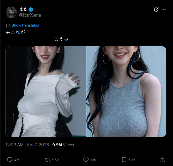 this is like the 5th time karina's saggy tits have gone viral on japanese twitter