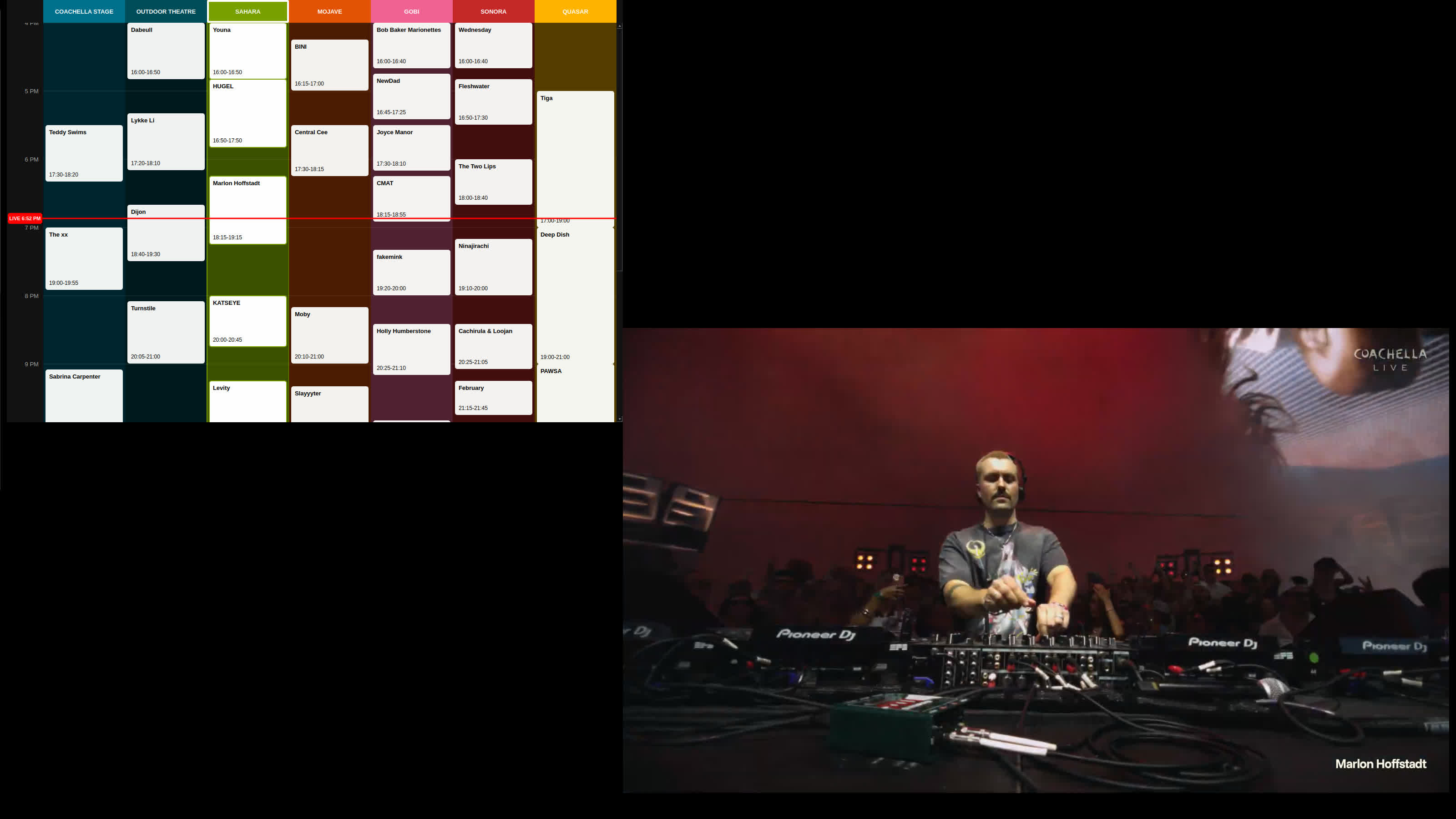YouTube fucking up the @Coachella page made me vibecode a more useful UI so I'm kinda glad they did. Feels comfy to have the stream / schedule logic into a single place.