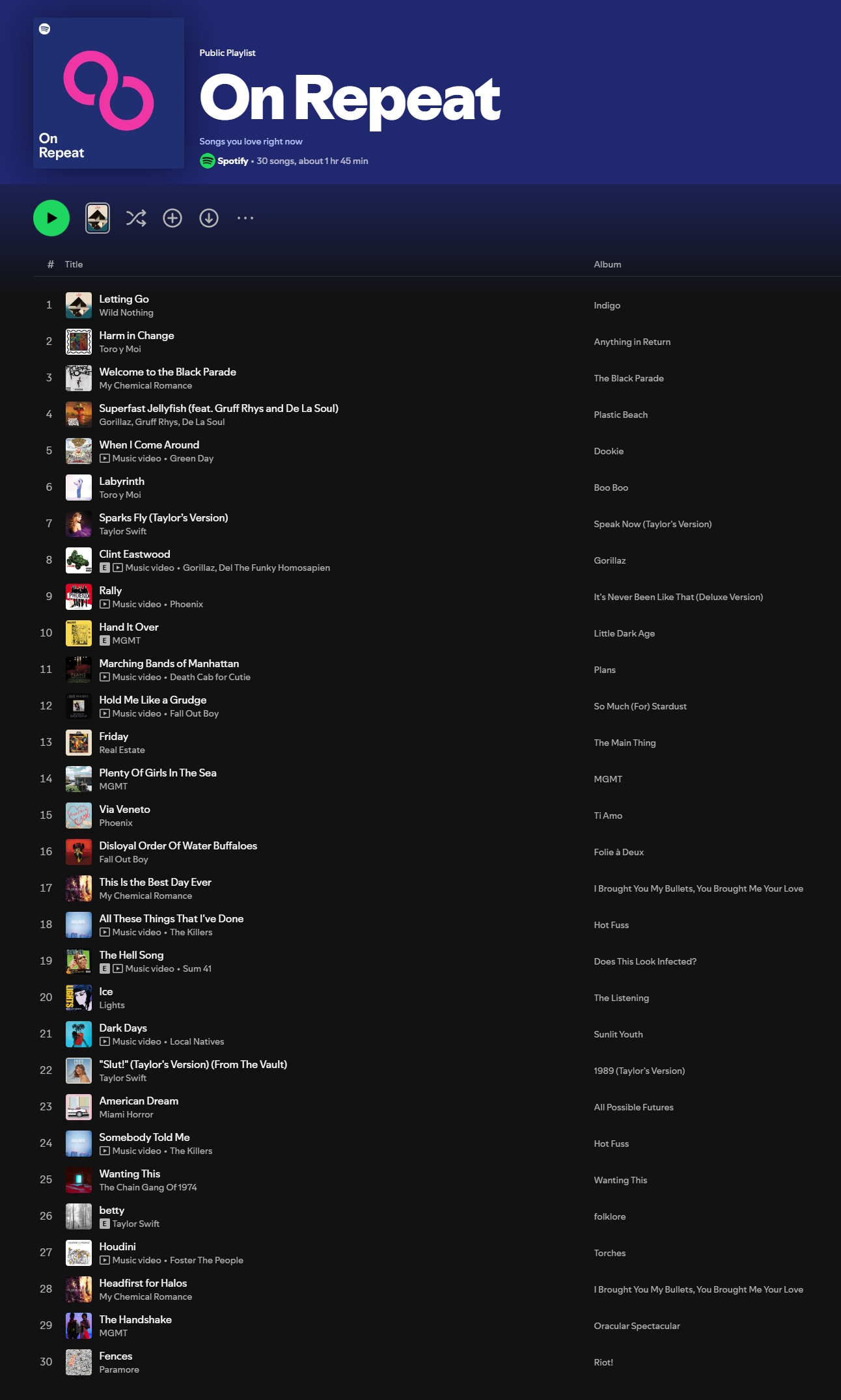 Post your on repeat Playlist and we judge and make assumptions about you. https://open.spotify.com/playlist/37i9dQZF1Epx7xyZn2xuMe?si=C8stOQAqT1mMPVy6sZpWNA&pi=uXNxwxwiS6aNo