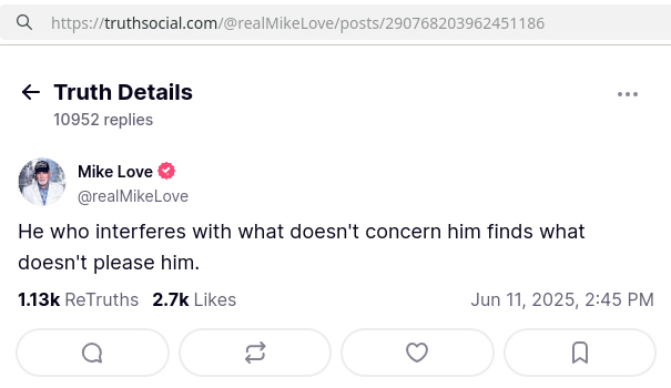 >>129963440Has Mike ever explained his Truth Social posts from the day of Brian's death? I don't want to assume the worst, but he was on a truly bizarre tear that day