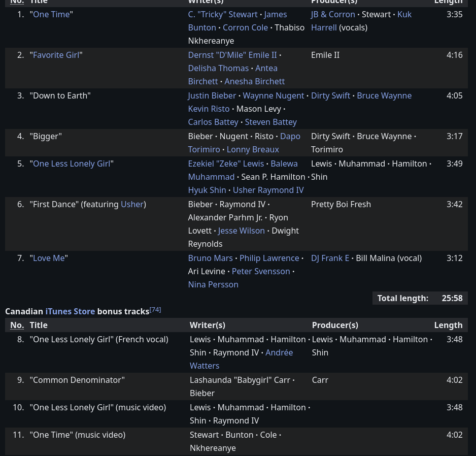That post was already replied to and explained though. That was from when Justin was a child star. As was stated in the post earlier, do you really expect a child star to be writing and releasing their own music?