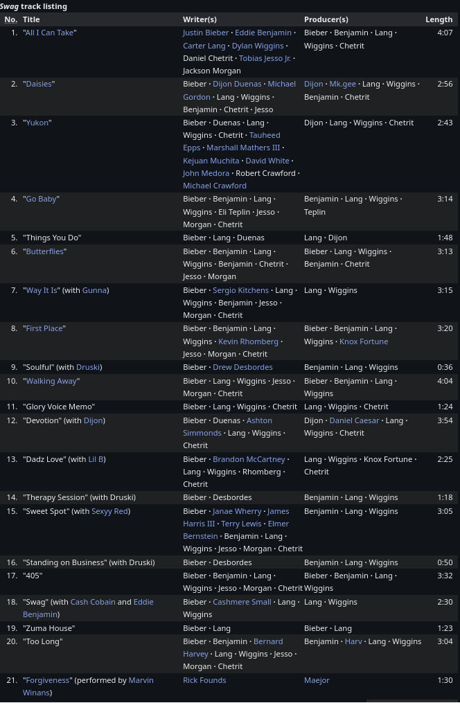 I don't. Just saying that if it was Tay or Bey it would be all "buh buh dozens of writers and producers" cope instead of "hurr durr Bieber is based because he makes the lib froids mad"