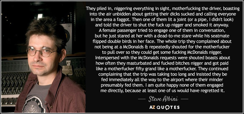 Albini still making a couple of huge flaming faggots zoomers lol