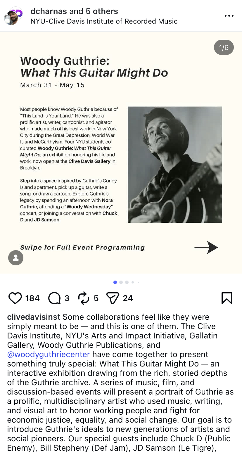 >>129992633Interesting how Guthrie is now being celebrated by one of the most elite universities in the world at a school owned by one of the music industry’s most powerful people.