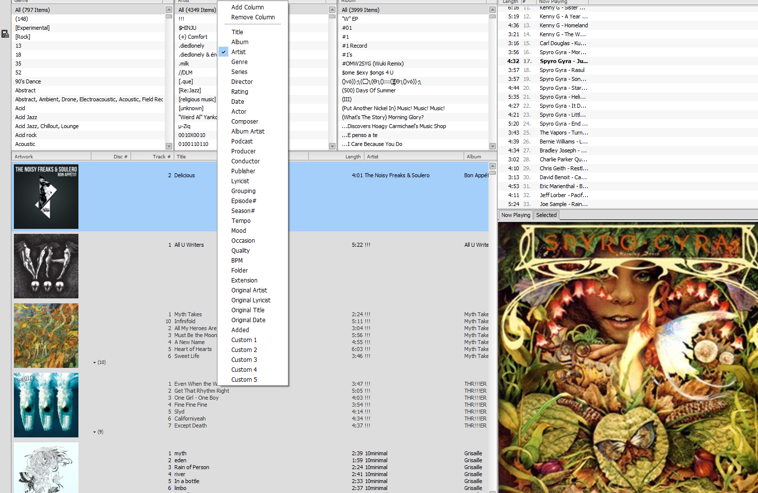 Right now I can browse and filter my Library by Album/Artist/Genre. But you can see the other options Mediamonkey offers as well.