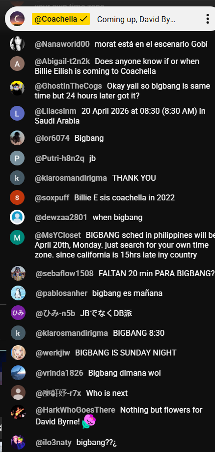 Was at David Byrne's set last weekend. Barely anyone at his set. Honestly felt bad. Hope he has a bigger turnout this week.
