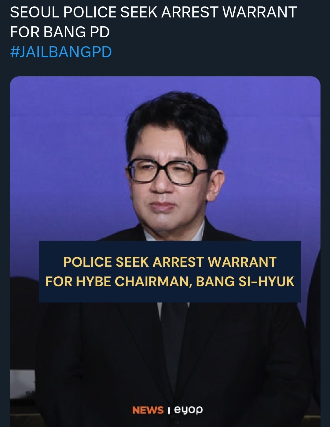 >[Breaking News] Police Apply for Arrest Warrant for HYBE Chairman Bang Si-hyukHappy birthday, Hyein!