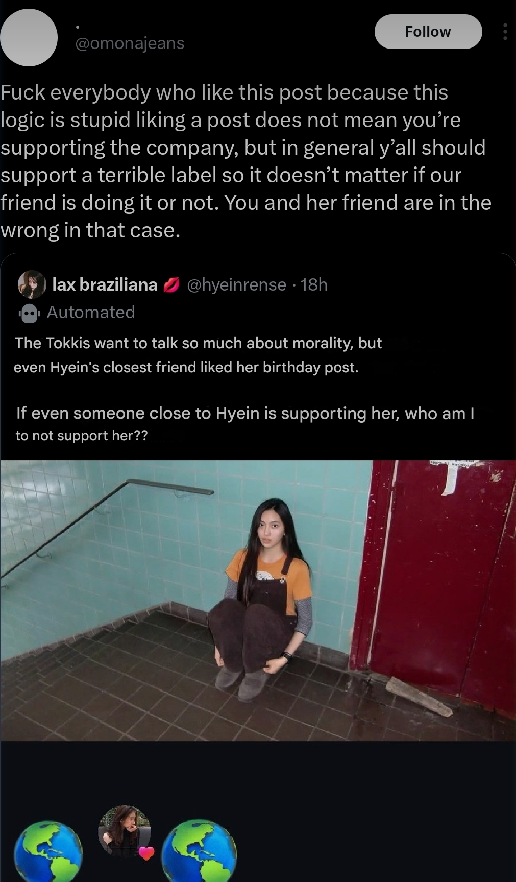 >>130055266even worse, yoonchae, the korean member of the musical group katseye, who are signed to south korean record label hybe labels, was caught drinking coca-cola, which is on the bds list