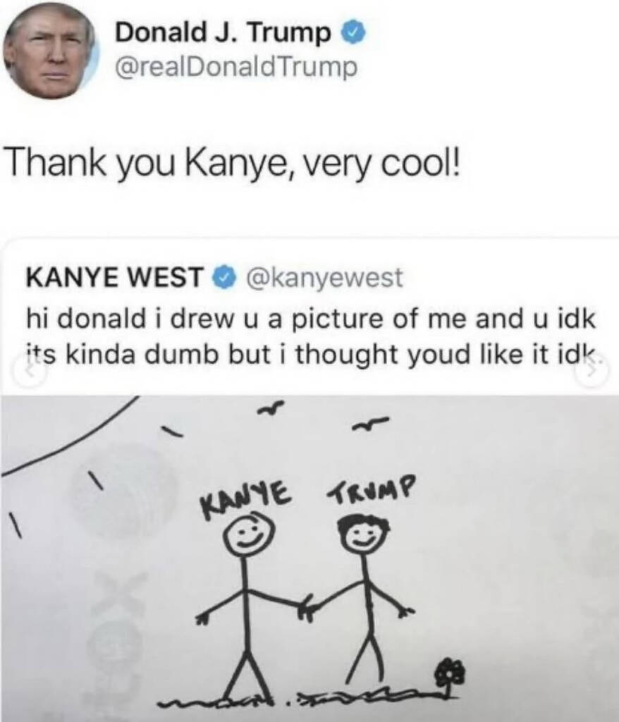 >>130054954this. he didn't mean that shit. The only thing he regrets is that his cheap, desperate publicity stunt was totally unnecessary, since he's still moving gobs of tickets for fans despite releasing lukewarm pablum albums.If he was that mad about Kardashians taking his kids, he would've rapped about a 2nd Armenian Genocide or some shit.(((they))) love him anyway because Ye is MAGA trash. $2 billion to fight a proxy war against Iran for Israel gets you a lot of "OK we'll look the other way"