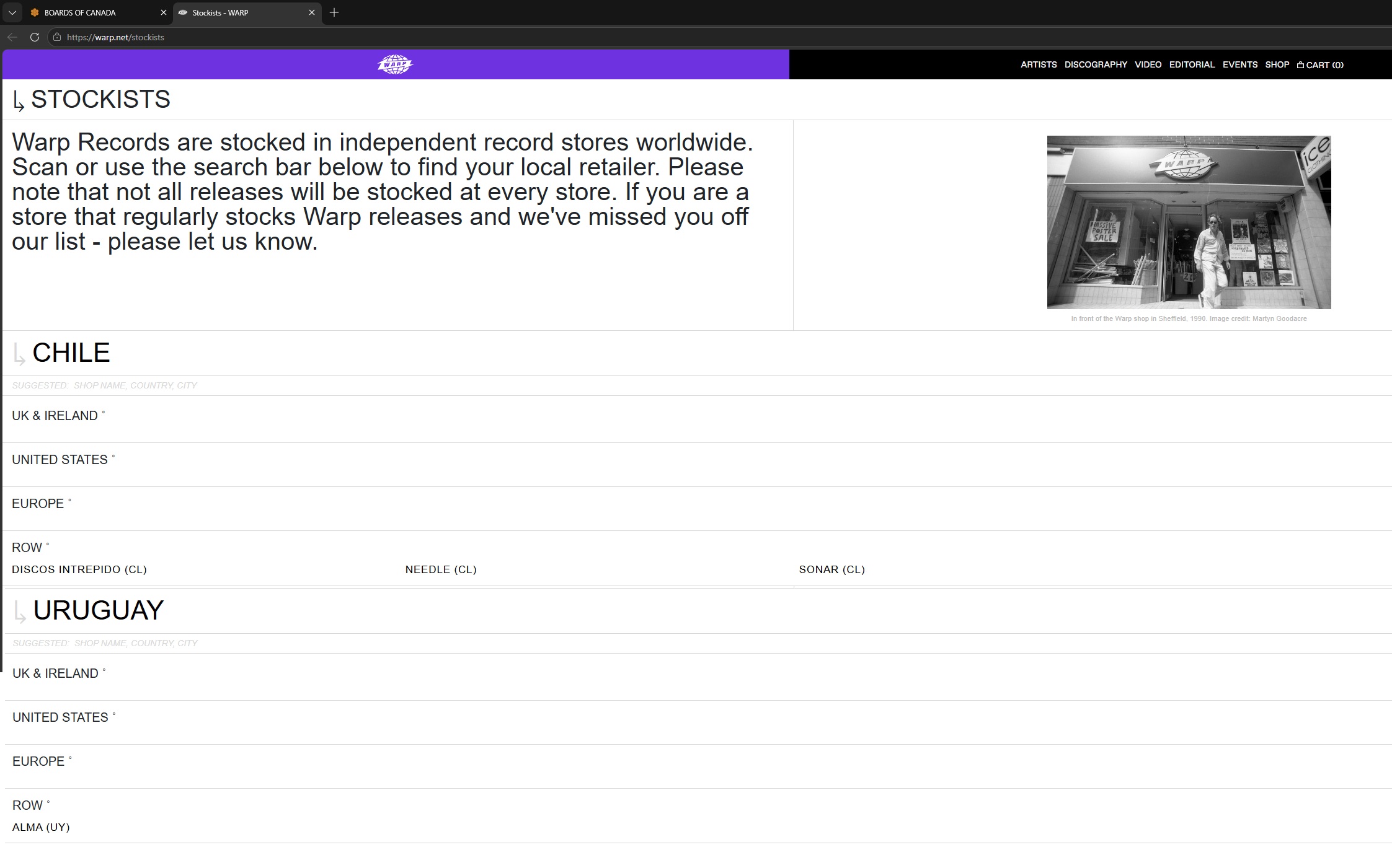 >>130069239>>130068497I found 3 stores in Chile and 1 in Uruguay. 0 in Argentina and Brazil. Do you guys know any of these stores?https://warp.net/stockists